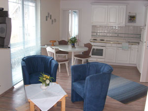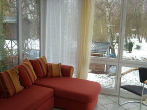 Die Wohnung hat 56 qm Wohnfläche und verfügt über ein Wohnzimmer mit amerikanischer Küche, zwei Schlafzimmer, ein Bad mit Dusche und Badewanne sowie einen Wintergarten. Vom zweiten separaten Schlafzimmer aus eröffnet sich Ihnen ein fantastischer Blick in den Garten. Die Wohnung bietet ausreichend Platz für bis zu 4 Personen und trägt durch ihre beruhigende Ausstrahlung zu Ihrer Erholung bei.